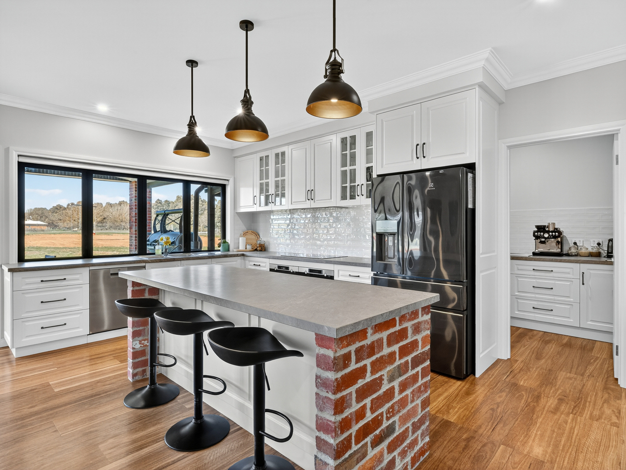 Completed in 2021, this 4 Bedroom, 2 Bathroom, recycled red brick home with full wrap around verandah features stunning rural views and will impress at every turn. Upon arrival you're greeted with a beautiful wide entrance, 2.7m ceilings and stylish vinyl plank flooring. The kitchen/living and dining area is immaculately appointed showcasing several unique extras, including porcelain benchtops, dual wall ovens, induction cooktop, large butlers and bi-fold windows. A combustion wood heater adds warmth and expansive bifold doors complete this space.
